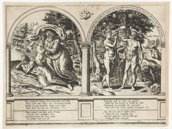 Frans Huys created this print, “De Mens door Ongehoorzaamheid gebonden en door Zonde gedreven,” sometime in the mid-16th century. During this period, humanism and religious reformations were reshaping European thought and art. The print presents a divided view of humanity, split between obedience and sin. On the left, we see figures bound by disobedience, their postures conveying struggle and constraint. On the right, figures are driven by sin. The nudity of the figures brings an emotional vulnerability to the work, reflecting the fragile state of humanity caught between divine law and earthly desires. The artwork reflects anxieties around moral choice, and explores themes of free will versus predestination, which were central to the Reformation. The print does not shy away from depicting the consequences of moral transgression. It serves as a stark reminder of the ever-present tension between human will and religious doctrine.
