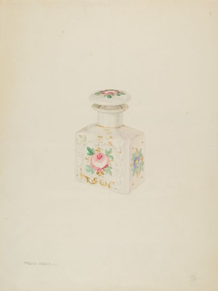 Charles Henning created this watercolor painting of a Toleware Tea Caddy. Henning, who lived a long life, witnessed immense changes in American society and artistic expression. This object gives us insight into the decorative arts and domestic life of the late 19th and early 20th centuries. Tea caddies were functional objects, but here, the artist elevates it through painting. The floral design reflects an interest in naturalism, yet also hints at the growing commercialization of culture through mass production. The painting, with its muted tones, conveys a certain nostalgia for a simpler time, even as industrialization was transforming American society. Henning's painting of the tea caddy captures a moment in the evolving story of American identity, caught between tradition and modernity. It reminds us of the intimate connections between art, everyday life, and the broader forces shaping our world.