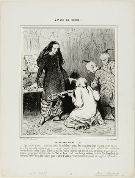Honoré Daumier made this lithograph titled "The Displeasure of a Sculpture Placed in the Middle of an Exhibition of Paintings" as a plate from "Salon De 1857." It captures the social dynamics and artistic hierarchies of 19th-century France. Daumier critiques the Parisian art world and the institutions that governed it. We see the sculpture literally and figuratively elevated above paintings and the audience. The sculpture’s exaggerated expression and pose mocks the grandiosity often associated with academic art. Meanwhile, the reactions of the viewers below, from boredom to bewilderment, underscore the disconnect between the art establishment and the public. This critique aligns with Daumier’s broader commentary on the social structures of his time. He often used his art to challenge the status quo. To understand Daumier’s work fully, we can look at the Salon system, the rise of Realism, and the changing role of art in French society during the 1850s. His lithographs, published in popular newspapers, are invaluable resources for understanding this cultural history.