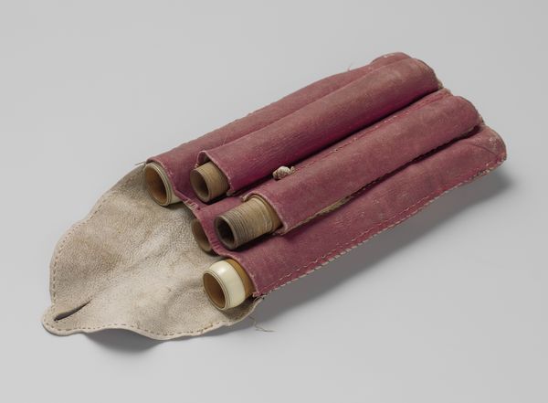 Editor: Here we have a pompom, estimated to be from 1828, intended for wear on a shako of the Royal Netherlands Marine Corps. It's crafted with mixed media, incorporating textile and metal. Its peculiar shape makes me wonder what statements about national identity it made during the Romanticism movement. What’s your perspective on this seemingly simple piece? Curator: It’s easy to dismiss an object like this as merely decorative, but I think it is so much more. It embodies a very specific time and the intersection of nationalism, identity, and even class. How do you think military adornment reinforces social hierarchies? Editor: Well, I suppose the Marines who wore the best-made, most flamboyant pompoms sent the message that they are an elite unit. Maybe, back in the day, Marines also thought their pompoms were beautiful. Curator: Exactly! And the specific colors, materials, and design elements all contribute to that message. Think about the power dynamics inherent in military uniform. How does this pompom visually contribute to the narrative of military might and perhaps, even national identity? Editor: It's a Dutch pompom, so the orange says something. Maybe loyalty to the House of Orange, because the Netherlands were a monarchy back then? But I don’t understand how a pompom could affect class... Curator: Consider who has access to these symbols of power and status. Uniforms, including their decorative elements like this pompom, serve to visually distinguish and legitimize certain roles within the military and the broader social structure. It reflects who belongs and who doesn't, reinforcing existing power structures. Does this make sense? Editor: Yes, it’s a new way for me to appreciate the complexity and significance of historical objects. So much can be packed into one little artifact. Curator: Precisely. By understanding the social context, we reveal not just aesthetics, but embedded narratives of identity and social standing.