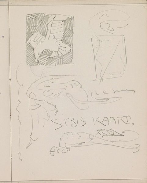 Editor: This is a drawing from 1919 by Reijer Stolk, called "Reclameontwerp voor zonneschermen, ornamenten en een ex libris," or "Advertising design for awnings, ornaments and an ex libris." It's rendered in ink and pencil on paper and seems like a preliminary sketch page. There's a sort of playful energy here, almost whimsical despite the commercial purpose. What do you see in this piece? Curator: What strikes me is how this work reflects the social context of the early 20th century. Art Nouveau, with its emphasis on organic forms and decoration, was often intertwined with burgeoning consumer culture. Stolk’s design, especially considering the "ex libris," points to a desire to elevate everyday objects through art. How might this relate to class aspirations and access to culture at the time? Editor: So, these weren't just sketches, but a statement on making art accessible and blending it with commercial design? Curator: Precisely. Consider the political implications: was this democratization of art genuinely challenging the elite's monopoly on cultural capital, or was it merely co-opting artistic aesthetics for capitalist gain? Also, notice the lettering. Whose voices were, and weren't, amplified through this kind of design? Editor: It's interesting to consider whose art was being made visible, and whose was being obscured. So, beyond the immediate beauty of the piece, you see it reflecting and perhaps even shaping conversations about class, access, and who gets to participate in artistic movements. Curator: Absolutely. The aesthetic choices are never neutral; they're always engaged in a dialogue with power and representation. It encourages a deeper questioning of the artwork’s role in society and whose interests it might be serving. Editor: I see. Thank you. I definitely have a broader understanding of this work and its importance. Curator: And hopefully a clearer understanding of our roles as critical viewers, too.
