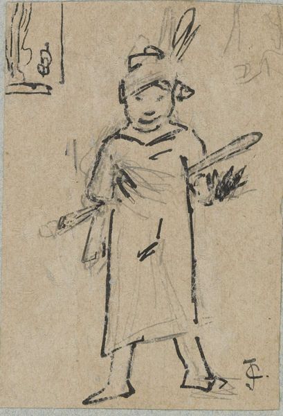 Curator: John Henderson's study, "A French Peasant Woman," rendered in pen, presents a woman of quiet dignity. There is no firm date for this piece but it now lives within the Tate Collections. Editor: She looks stoic, almost melancholy. The quick strokes give a sense of immediacy, as if Henderson just quickly captured her essence. Curator: The crossed arms and the traditional cap are such enduring symbols of resilience and, dare I say, defiance across cultures. There is something about the lack of adornment that speaks volumes. Editor: Absolutely, it strips away any pretense, revealing a raw vulnerability but also hinting at inner strength. Her gaze, though simply drawn, carries a weight of untold stories. Curator: It's that tension, isn't it, between the simplicity of the lines and the depth of feeling, that makes this small study so compelling. Editor: Indeed, it's a quiet testament to the enduring spirit of ordinary people.
