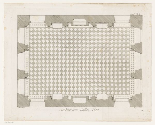 Ithiel Town created this "Plan of U. S. Custom House" using pen and ink with watercolor on paper. The structure reveals a rigorously symmetrical design with clear geometric forms. Note how the architect employed the visual language of neoclassicism, emphasizing order and proportion, with a central dome. The plan presents an interplay of circles and rectangles, where the rounded dome contrasts with the building's angular structure and the grid-like arrangement of columns. Through a combination of architectural drawing conventions and artistic rendering, Town provides not just a blueprint, but also engages with broader artistic and philosophical notions of space and representation. Consider how Town uses linear precision to map not only the physical layout but also the implied circulation and use of space. The semiotic elements within the plan, such as the scale and street markings, transform the drawing into a complex representation of civic space. These elements invite us to interpret how architectural forms shape social interactions and embody political ideologies.