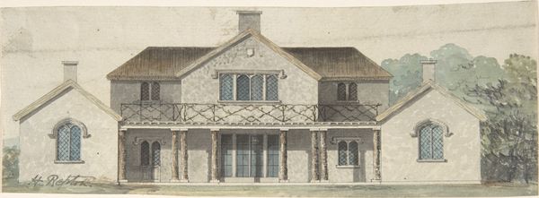 Charles Edward Mallows created this drawing, "South Elevation and East or Entrance Elevation of a House," using graphite and watercolor on paper. The twin elevations, rendered with precise linearity, articulate Mallows' vision for domestic architecture. The structure is anchored by strong horizontal lines and punctuated by the steep angles of the rooflines. The architectural drawing combines a sense of grounded stability with dynamic spatial arrangements. The windows, conceived as modular units, suggest an interiority deeply connected with the exterior. Notice how Mallows employs watercolor washes to subtly define surfaces, enhancing the contrast between the solid forms of the building and the surrounding space. This interplay between line and color, form and space, aligns with the broader artistic investigations of the period, where artists and architects sought to redefine the relationship between the built environment and human experience. In this work, Mallows presents architecture not merely as functional construction, but as a carefully structured arrangement of forms intended to shape and enhance daily life.