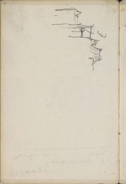 Editor: This pencil drawing, "Studie, mogelijk van dakpannen" – Study, possibly of roof tiles – was created by George Hendrik Breitner between 1886 and 1903. It’s currently held at the Rijksmuseum. It’s very minimal, almost like a quick visual note. How do you interpret this work through a formalist lens? Curator: Indeed. The power of this piece lies not in subject matter, but in the very act of mark-making itself. Consider the texture – the tooth of the paper is integral to the final visual experience. The weight and pressure of Breitner's pencil define the tiles' forms, their recession into space implied by subtle gradations in tone. Note the negative space surrounding the tiles: what purpose does it serve? Editor: It makes the drawing feel more open and airy, perhaps suggesting that this is part of a larger scene. It emphasizes the fragmentary nature of the study. Curator: Precisely. This openness encourages us to focus on the interplay of line and tone, disregarding representational concerns. The lines aren't descriptive, but constructive; they manifest the idea of "tile-ness." One might argue that the drawing itself _is_ the subject. How does the composition influence your perception of the artwork? Editor: The tiles are situated asymmetrically towards the lower left of the page. Because they’re not centrally placed, that creates a dynamic tension that adds to the feeling that it is more of a spontaneous study than a carefully planned drawing. I hadn’t really thought of it that way. Curator: A most insightful observation. It highlights how seemingly simple artistic choices regarding placement can generate complex visual relationships and imbue the artwork with meaning. Editor: It's amazing to realize that something so simple could invite such complex analysis focusing on the basics of art making. Thank you.