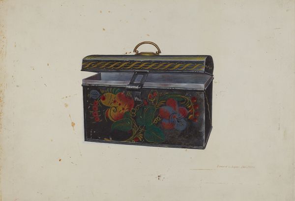 Max Soltmann's 'Box with Lid' is a painting with humble materials, probably made sometime in the 20th century. The color palette is earthy but also surprisingly vibrant, setting a warm, inviting tone. I'm drawn to the way the artist renders the floral design on the box. The forms are simplified, with a nod to folk art, yet there's an elegance in the way each stroke captures the essence of a flower or leaf. Look at the texture – you can almost feel the roughness of the canvas and the thinness of the paint. It's not about perfection; it's about the joy of making something. That smudge of white paint near the bottom feels almost like a deliberate gesture, a little rebellion against the neatness of the subject matter. You could see the influence of other artists who explored similar themes like Henri Rousseau. Soltmann's 'Box with Lid' reminds us that art is an ongoing conversation, a playful exchange of ideas across time.