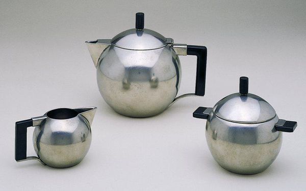 Curator: Welcome. Here we have a coffee set designed in 1930 by Wiwen Nilsson, part of the decorative art holdings in the Minneapolis Institute of Art. The set, sculpted from silver and metal, showcases Nilsson's elegant approach to Art Deco. Editor: Stark. That's my initial reaction. A dazzling geometric rigidity, almost like a cubist still life materialized in gleaming silver. Curator: Indeed. This set is fascinating because it straddles utility and the avant-garde, it appeared during a period when the decorative arts sought parity with the fine arts, consciously engaging design with socio-political change. Its sleek form defies the opulence typically associated with luxury items. Editor: Precisely! Note the striking interplay of light and shadow across the precisely angled facets. The way the cylindrical handles are so sparsely affixed adds to the overall machine-age aesthetic. Every element feels rigorously pared-down. Curator: Nilsson’s designs resonated with the functionalist movement’s ethos of form following function, stripping away excessive ornamentation and aligning itself with modernism's societal aims: this wasn’t just a coffee set. This was a statement against pre-war bourgeoise sensibilities. Editor: So true. It isn’t frivolous. I detect echoes of Bauhaus in its uncompromising simplicity. But the high-shine material itself also reflects the era's celebration of industrial progress. Silver elevates these practical forms into luxurious objects. Curator: Beyond design and manufacture, it hints at the role luxury played at this time. Who did it serve? How were domestic tastes reshaped by modern artistic movements? The Coffee Set embodies the shift in society between the wars toward industrial aesthetics, challenging class lines as the aesthetic of elites shifted towards starker shapes and simplified features. Editor: The social commentary adds richness to appreciating what otherwise would be purely abstract appreciation. It transforms mundane tools of hospitality into quiet monuments. Curator: Thinking about its provenance enriches our comprehension of its presence now. Seeing its functionality now allows new perspectives and dialogue. Editor: Indeed. I find myself viewing both form and history in a fascinating new light.