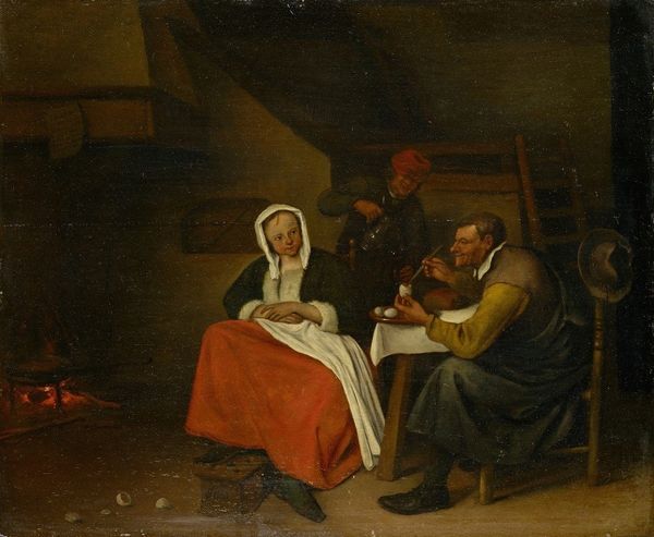 Jan Steen, painted this genre scene which captures a slice of 17th-century Dutch life. Born in Leiden, Steen was not only an artist but also an innkeeper, which gave him a front-row seat to the daily dramas of ordinary people. Here we see a boisterous tavern interior. It's a space alive with social exchange, but also subtle tensions. Look closely, and you’ll notice how Steen positions the figures, a central female figure seems to be caught in a transaction, perhaps exploited, while others indulge in drink and revelry. The older woman counting coins introduces an element of financial exchange, likely at the expense of the central younger woman. Steen frequently included moralizing elements in his paintings, and it's hard to ignore the implications about female exploitation. The scene invites us to reflect on the social dynamics of the time, and how women navigated a world dominated by men and commerce.