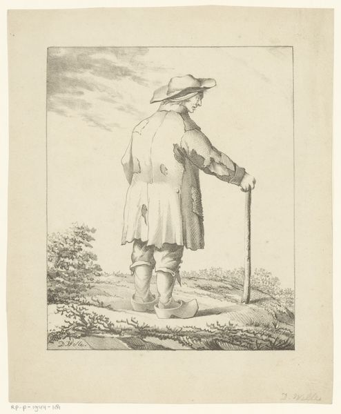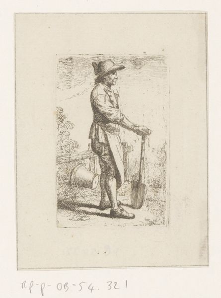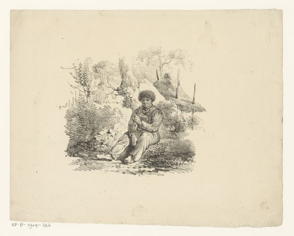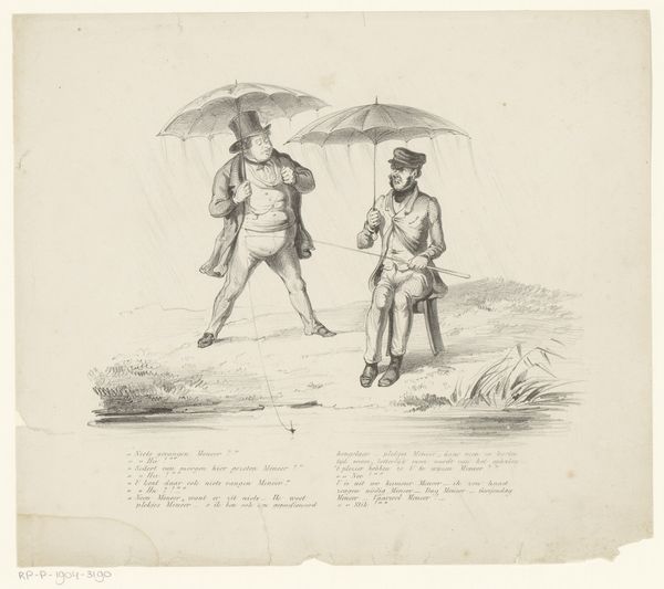 Alexander Ver Huell created "Visser op eiland," or "Fisherman on Island," using pen in the nineteenth century. Ver Huell lived in the Netherlands during a time of significant societal change, as industrialization and urbanization began to reshape Dutch society. In this drawing, we see a man fishing, dressed in a top hat and formal wear, seemingly unconcerned about the potential mess. In the background, another figure can be seen watching him. There's an element of satire here. The absurdity of the fisherman's attire prompts us to reflect on social class, leisure, and the performance of identity. Is he a member of the bourgeoisie, engaging in a leisurely pastime? Is Ver Huell inviting us to question the values and affectations of this rising class? The act of fishing is thus transformed from a simple pastime into a subtle commentary on social status, inviting us to reflect on the complex interplay between identity and environment.