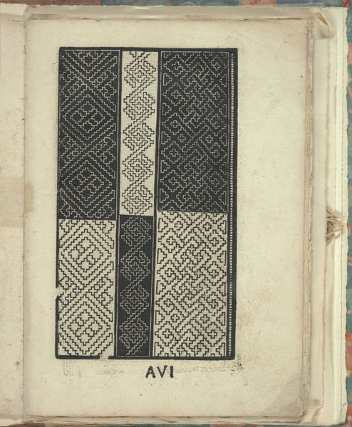 Editor: So, here we have Giovanni Vavassore's "Opera Nova Universali" from 1530, it's a page from a book of lace-making patterns, rendered as a print. The dense gridwork feels almost hypnotic to me. What catches your eye in this image? Curator: The grid itself, it acts as a powerful container. Grids, historically, signify order, control, a framework for understanding the world. But within that rigid structure, there’s an explosion of organic forms striving to break free. It mirrors our human desire to organize and control, while simultaneously acknowledging the chaotic beauty of nature. What do you think this tension signifies? Editor: I guess it shows the effort to standardize designs versus the individual artisan’s flair? That they have to adhere to some basic principles to start with, and then work from there? Curator: Precisely! This piece visualizes the bridge between structure and improvisation. It evokes earlier memories too. These geometric patterns pull heavily from Moorish designs which came to Italy through trade. The design of this printed drawing became a template, something universally understood which transcends regional styles. This speaks to the interconnectedness of cultures throughout history, doesn't it? Editor: Definitely. It’s amazing how a simple grid can unlock so much about cultural exchange and creative tension. It makes you wonder about all the hands that actually followed this pattern in cloth and thread. Curator: Yes, absolutely, this design in two dimensions serves as the guide for those three-dimensional creative visions to emerge. I appreciate seeing this link to the maker-culture of the time. Editor: I'm walking away seeing the image entirely differently, less static, more a blueprint of a global exchange of patterns! Curator: Indeed, it's a quiet testament to the enduring power of symbols and their ability to weave narratives across time and cultures.