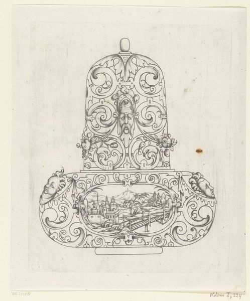 Luigi Valadier created this drawing for a pedestal with a coat of arms in the 18th century using graphite and paper. A symmetrical structure, the proposed design features a central axis that grounds the elaborate flourishes of Baroque ornamentation. The eye moves vertically from the scrolled feet upwards. The pedestal's curves are tempered by a horizontal plan that provides a resting place for a sculpture or bust. Valadier was instrumental in the shift towards Neoclassicism, but we see this Baroque design retains a commitment to ornamentation and dynamism. The pedestal's design employs what Ferdinand de Saussure would call a system of signs; the coat of arms centrally placed upon the stand, the scrolls evoking classical acanthus leaves, and the pedestal itself as a signifier of status, all point to the aesthetic language of power. Notice how the composition is poised between movement and stasis. This tension embodies how the visual arts operate in the realm of cultural discourse, where fixed meanings are constantly contested.