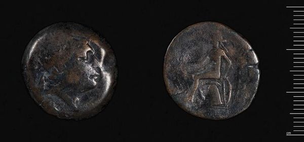 Curator: Before us is a coin of Ptolemy II, crafted in Alexandria. What catches your eye first about this small artifact? Editor: The worn surface speaks volumes. It feels like a testament to the countless hands it passed through. It emphasizes the material reality of power. Curator: Absolutely. Consider the role of currency in consolidating Ptolemaic power. How does the image of Ptolemy II reinforce his authority? Editor: The very act of minting, of controlling the material, establishes power. The coin's material is the message: the king's face as a symbol of control. Curator: Coins also reveal the power dynamics of the Ptolemaic dynasty and the socio-political context that supported its reign. The eagle, of course, alludes to Zeus and legitimized Ptolemaic rule. Editor: Seeing it this way makes the coin more than just currency. It’s a narrative etched in metal—a material record of power and exchange. Curator: It reminds us that objects are never neutral. Editor: Precisely. It's a testament to the potent materiality of ideology.