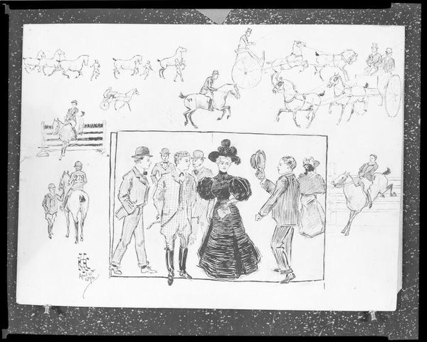 John William Casilear made this sketch of five figures from a sketchbook, but its exact date is unknown. The figures seem to be depictions of people of different social classes and backgrounds. The sketch depicts men and women with different costumes, but it is unclear what the meaning or symbolism of this juxtaposition is. Made in the US sometime during the 19th century, the figures may represent a commentary on the social structures of the time, with its focus on the lives of ordinary people. Casilear may have been interested in how people from different social classes interacted with each other. Was he attempting to represent a more accurate and inclusive view of society? Was he trying to expose inequalities or simply show people living together? Understanding the social conditions that shaped Casilear's artistic production would help to better understand this image. Scholarly articles, biographies, and primary source documents such as letters and diaries can provide valuable information.