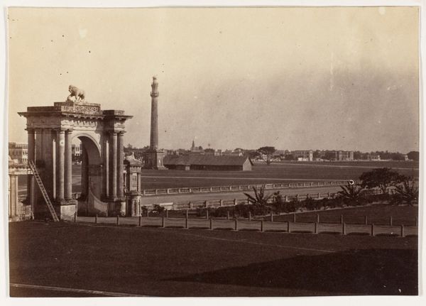This albumen silver print by John Constantine Stanley captures the Maidan from Government House in India. Photography at this time involved a complex chemistry, manipulating light-sensitive materials like silver salts on a treated paper surface. The final sepia tone imbued the image with a timeless quality, despite its capturing of a specific moment and place. What's fascinating here is the social context embedded in the production of this image. As a British officer, Stanley would have been part of the colonial administration. The photograph presents a meticulously ordered landscape, a visual representation of British power and control in India. The labour involved in maintaining such a manicured environment and the social inequalities inherent in the colonial project are subtly present. It makes us question the relationship between the technology of photography, the exercise of colonial power, and the representation of landscape.