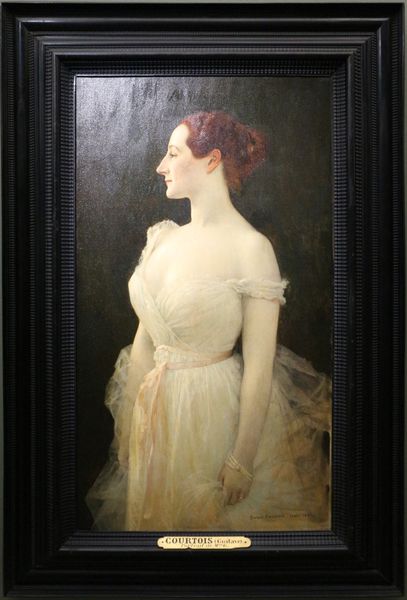 Editor: This is "La Giovane Repubblica," or "The Young Republic," painted by Alfred Roller around 1908. It's oil on canvas and resides here at the Musée d'Orsay. I'm immediately struck by the bold red and how confidently she stands, but it's also somewhat dreamlike. What do you see in this piece, particularly concerning its allegorical elements? Curator: I see a figure steeped in symbolic weight. The red robe, while striking visually, carries centuries of association: revolution, passion, even sacrifice. But it's not merely decorative. Consider its association with revolutionary figures throughout history. Does it evoke, perhaps, the Phrygian cap of Liberty? Her pose, arms outstretched, feels like an embrace of the future, a future yet undefined. How do you interpret that open gesture, particularly in contrast to the uncertain landscape behind her? Editor: It feels optimistic, almost daring. Like she’s ready for anything. But what about the partially exposed breast? It seems…uncommon for an allegorical figure, doesn't it? Curator: It deviates from the purely classical, certainly. I see it less as purely sensual and more as symbolic of nourishment and nurturing. The republic, after all, needs to foster its citizens. The bare breast is an ancient motif, referencing not just the female form but the generative power of nature and the land itself. Are there other symbols or colors that stand out to you? Editor: I guess the whiteness of her skin stands out to me, too. It’s pale compared to that bright red! It also seems a little unfinished overall. Curator: Interesting. This "unfinished" quality perhaps reflects the ever-evolving nature of a republic, constantly under construction. The whiteness against the red is striking; purity against action, maybe? These contrasts suggest not a fixed state, but an ongoing process. We have a provocative depiction of potential, an image not just of where we are, but where we aspire to be. Editor: I never considered the idea of incompleteness as a symbol itself. Thank you, this was a very helpful interpretation.