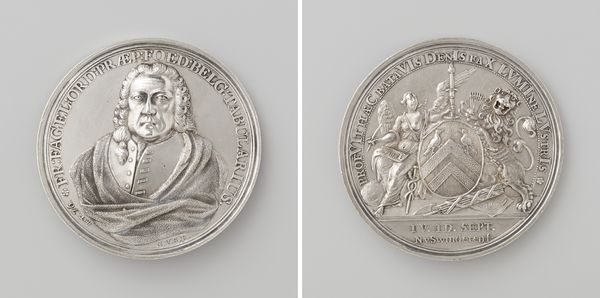 Editor: Here we have Philippe Roëttiers' medal, "Birth of Prince Leopold of Austria", made in 1716 out of metal. The baroque style makes the relief images seem so grand, especially for a coin! What can you tell us about it? Curator: Let's consider this medal within the context of its material production. The labor involved in minting such an item elevates the Prince’s birth to a state event. Roettiers, as a leading medalist, employed sophisticated techniques to translate royal power into a portable, collectible form. Think about how the precious metal and the detailed relief not only convey status, but were intended to circulate, propagating a specific image of the Austrian dynasty. Editor: So, the choice of metal isn’t just about aesthetics; it's part of the message itself? Curator: Precisely. The gleam of the metal, the weight of the object, the skilled hands required to create it—all contribute to its significance. The act of distributing these medals further solidifies this power by creating a direct tangible connection to its patron, whose likeness it bears. It really pushes against any strict boundary of ‘fine’ art because it blends craft and socio-political motives so overtly. Editor: I see now how this little object embodies significant power dynamics. The act of distributing them…almost like sowing seeds of political allegiance. Curator: Yes! Medals such as these, by skillfully managing material, imagery, and access, provided a medium to project authority and shape perception across social strata. Examining the production of these medals offers valuable insight into understanding patronage in the 18th century. Editor: I hadn’t considered the labor or production process before; it definitely adds another layer to appreciate! Curator: Absolutely, focusing on materials gives a richer understanding.