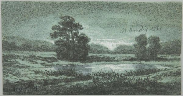 Curator: We're now looking at Carl Bloch's etching from 1881, "Strandparti ved Hellebæk. Måneskin," or "Beach Scene by Hellebæk. Moonlight". Editor: It's an evocative nocturne. The heavy sky seems to press down, and the moon's reflection shimmers rather ominously on the water. A real masterclass of chiaroscuro, especially for a print. Curator: Indeed. It's a relatively late work by Bloch, created near the end of his life. He was celebrated during his life, becoming famous for his history paintings, particularly those depicting biblical scenes for the royal chapel at Fredensborg Palace. But this... it speaks to a different facet of the time. We often think of Danish Golden Age painting as sunny, pastoral scenes. Editor: But here, we have a Romantic sensibility creeping in. It's more aligned with contemporary anxieties around industrialization and modernization. The small boat on the right looks rather insignificant against the immensity of the sea and sky. Even the light seems fragile. Curator: Etchings such as this became increasingly popular in the latter half of the 19th century, a way for artists to reach a wider audience with affordable artworks that explored the mood and atmosphere of places, even as those places were rapidly changing. This work's power comes from how the composition relies on this stark tonal contrast and tight linework. Editor: Yes, Bloch demonstrates remarkable control. The horizontality of the composition—the layering of the sky, land, and water— creates a strong sense of depth, while the precision in depicting architectural details creates a believable rendering of space. This makes the almost ethereal glow of moonlight seem all the more remarkable and symbolic. Curator: Looking at it now, I’m reminded of the shifting landscape of art patronage at the time. Religious commissions were declining. Art was starting to exist beyond traditional power structures. An artist like Bloch turning his hand to more accessible media tells us much about that cultural transformation. Editor: The print certainly reveals a complexity beyond the simple appeal of Realist depiction. The balance between observation and that rather dramatic use of light make this quite compelling. Curator: Absolutely, and perhaps it also represents a more introspective turn in Bloch’s work. It moves beyond a grander, moralising painting that he was originally celebrated for. Editor: Precisely, the moonlight's silent drama offers plenty to contemplate.