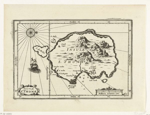 This is an anonymous map of the East Indies, created in 1616. The map is primarily linear, its stark monochrome emphasizing the intricate network of lines that define landmasses and shipping routes. Note how the dense concentration of these lines gives way to broader, less defined areas, creating a visual hierarchy. This cartographic representation isn't just a geographical document; it's a statement of power. The mapmaker's act of defining and delineating space reflects a will to control and understand it. The radiating lines from central points are not merely navigational aids but symbolic gestures, casting a net of influence across the depicted territories. Consider the implications of such a structured representation. Does it reveal the landscape or impose a particular order onto it? Think about the semiotic weight of cartography: how does it shape our perception of the world and legitimize certain claims? The aesthetic and formal choices in this map are inherently political, reflecting broader cultural ambitions and the complex interplay between knowledge, power, and representation.