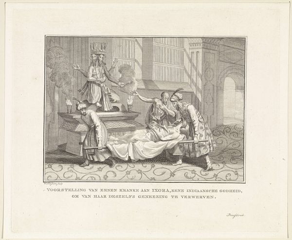 Editor: This is Plate Three of Triumph of Death, Triumph of Divinity, Triumph of Poverty, by Christian von Mechel. The imagery is striking. What repeated symbols or visual cues do you notice in this plate? Curator: Notice how Death is not a singular event, but an active participant in life’s different stations. Mechel uses the skeleton as a recurring motif. It’s a powerful symbol, connecting us to the past, reminding us of our shared mortality. How do you interpret the skeleton's presence within these domestic scenes? Editor: I guess it is a reminder that even everyday life can lead to death? Curator: Precisely. The skeleton acts as a memento mori. It speaks to the ephemeral nature of earthly triumphs. Recognizing these symbolic repetitions is key to understanding the enduring power of this imagery. Editor: That’s a fascinating perspective! I didn’t consider the skeleton as a symbol carrying a cultural memory of mortality.