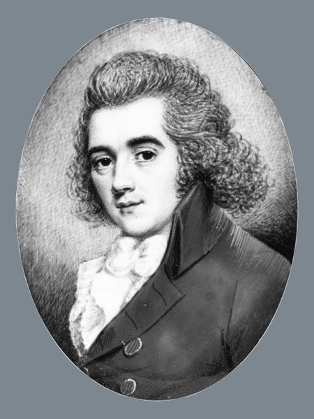 Nathaniel Rogers created this miniature watercolor portrait of an unnamed gentleman during the first half of the 19th century. Rogers, working in a period defined by strict social hierarchies, captures the sitter with a distinct emphasis on projecting a certain status. Consider the social context of early 19th-century America, where portraiture was largely the domain of the upper classes. Rogers’s meticulous attention to detail in rendering the gentleman's refined features and fashionable attire subtly reinforces prevailing notions of class and masculinity. What is it about the gentleman's gaze that draws the viewer in, and what does it conceal? The portrait's small scale invites intimacy, yet the sitter remains distant, embodying the restrained demeanor expected of men in his social position. This image presents not just an individual, but a carefully constructed representation of identity, reflecting and reinforcing the social norms of its time.