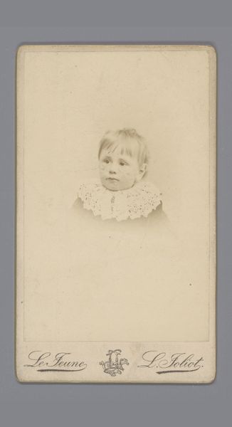 Editor: So, this is "Portret van een meisje," or Portrait of a Girl, taken sometime between 1860 and 1900, a photograph from Ch. Binger & Co. at the Rijksmuseum. There's such a strong sense of formality, even constraint, in this image of a child. What do you see when you look at it? Curator: I see the gaze of the other. This photograph exists within a historical framework that often objectified women and children, particularly within the rising middle class. Do you notice how the girl's direct gaze, while seemingly innocent, positions her within a power dynamic? The photographer, likely a man, capturing her image for posterity. What do you think that implies for her agency, or lack thereof? Editor: That’s interesting. I hadn't really considered the power dynamic inherent in early portrait photography like this. I was focusing more on the subject, that she looks almost melancholic or contemplative despite being so young. Curator: Precisely! And perhaps her expression isn't just melancholic. Consider the broader social expectations of women during this time. Restrained, proper, seen and not heard. Might this portrait, in its seeming simplicity, subtly reflect the constrained roles imposed upon women, even girls, during that era? Does her gaze challenge this imposed ideal? Editor: It makes me think about how little girls growing up today are constantly bombarded with expectations, and the degree to which we’ve grown more sensitive as a society. The girl seems aware that she is not free, perhaps? Curator: That awareness, whether conscious or not, becomes part of her historical narrative. How are women objectified in photographs and portraits today? Has photography really evolved and emancipated itself from the 19th century? These are questions to continuously keep at the front of our minds. Editor: That is a really important note. This has really opened my eyes to a new way of reading this photograph, and photographs more broadly! Curator: Mine too, in turn! Thank you.