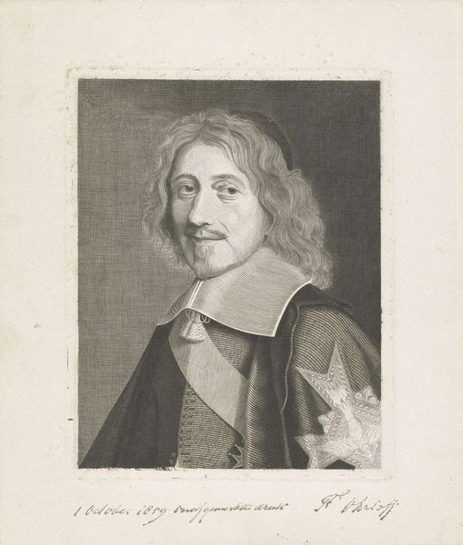 This is Robert Nanteuil’s portrait of Michel IV Le Tellier, created using engraving techniques. The most striking feature is the elaborate star on Le Tellier’s robe. In heraldry, stars often symbolize nobility, guidance, and divine favor. Here, the cross at the center hints at religious and chivalric orders, evoking the constellations as guiding lights, a concept stretching back to ancient astrology. We see related symbolism in Renaissance art, where stars appear on the robes of monarchs, and in the crowns of saints. Consider the way the star, once a celestial guide, transforms into a symbol of earthly power, mirroring humanity's eternal quest for meaning in the cosmos. Like the constant re-emergence of ancient gods in new guises, the star motif taps into a collective memory, resonating with our subconscious understanding of order and destiny.