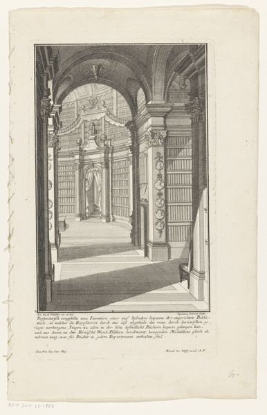 This is an anonymous monochrome drawing of a church interior with staircases. Note how the architectural space is structured around a series of arches, creating a visual tunnel that recedes into the distance. The repetitive use of arches and columns imposes a grid-like pattern, which gives order to the composition, while the receding perspective draws the eye deeper into the space, implying infinity. We can consider this as an exploration into the semiotics of space. Here, architectural elements function as signs which define and control spatial experience. The organization of the drawing and its architectural elements explores how our perception is guided and manipulated through structured visual cues. Consider the tension created between the implied boundlessness and the rigid architectural structure, a question about freedom versus control. This artwork reveals the intrinsic, and perhaps manipulative, nature of spatial design.