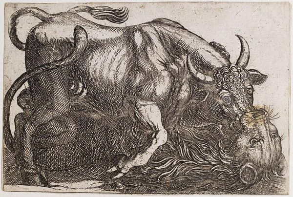 Editor: This is "Mr. Cheap Marijuana Bullfighter" by José Guadalupe Posada. It's a small print, and the scene feels both chaotic and darkly humorous. What layers of meaning do you see in this work? Curator: Considering Posada’s socio-political context, this likely critiques those in power—perhaps mocking their incompetence and detachment from reality. The bullfight becomes a stage for exposing societal absurdities. How does this imagery resonate with contemporary political satire? Editor: I see how the bullfight could represent a power struggle, but I hadn't considered the marijuana reference in the title as part of that critique. Curator: The marijuana element complicates the reading, suggesting a form of escapism or perhaps a commentary on the state's control over marginalized communities. It invites us to question who benefits from such spectacles. Editor: That's given me a lot to think about regarding the work's social implications. Curator: Indeed, art often functions as a mirror, reflecting societal anxieties and power dynamics.