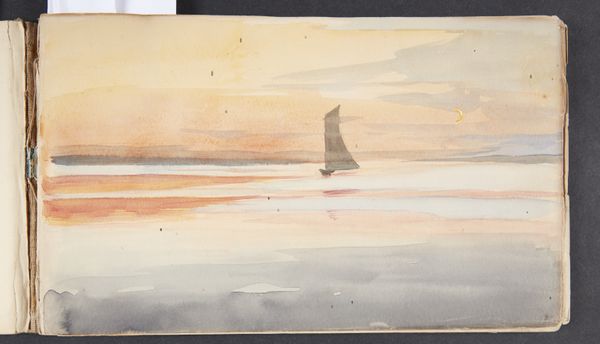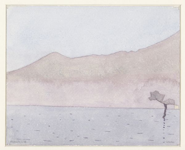 Editor: So, this watercolor and pencil sketch is called "Bay of Tunis Through Porthole of Steamship Fürst Bismark, Tunisia, North Africa, Travel Sketch" by Daniel Hudson Burnham, and it dates to 1896. I'm really drawn to the circular composition – it almost feels like looking through a telescope. What catches your eye in this piece? Curator: The framing device is, indeed, compelling. It immediately imposes a structure – a boundary within which we assess the relationships between color, line, and form. Note how the hazy pink of the sky softly abuts the pale lilac hills. And how this interacts with the aquamarine plane. The sketch privileges a kind of atmospheric perspective through chromatic modulation. Editor: Chromatic modulation… meaning how the colors change? Curator: Precisely. Burnham is manipulating the colors to create depth and distance within the composition, contained as it is within that circular frame. The softness of the watercolor, too, lends itself well to an evocation of atmosphere. Have you considered the effect of the porthole itself? Editor: Not really. It feels like a window... I hadn't considered it as more than just a shape, a structural element. Curator: But isn’t the structure inherently meaningful? The very act of framing is a way of isolating and examining – a gesture, shall we say, of intense looking? Consider the implications. Editor: That’s true, it focuses our attention. I guess I hadn't thought about how the frame *is* the point. Thanks, I'll look at framing a lot more closely now. Curator: And I see now, even more distinctly, how the application of media underscores its structural intentions. A delightful synergy.