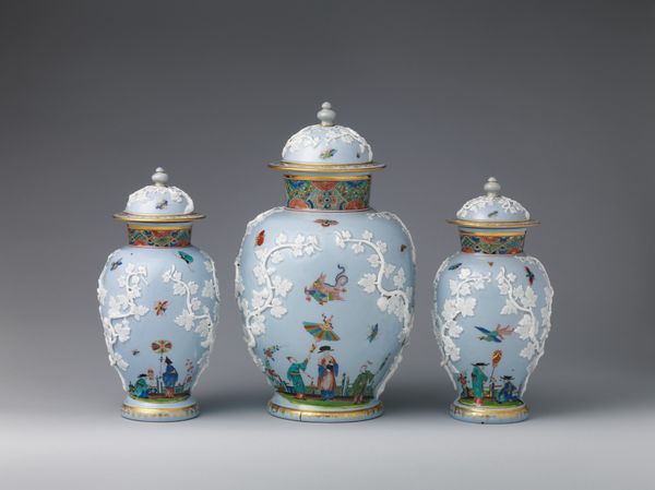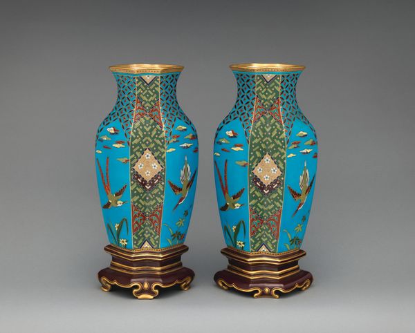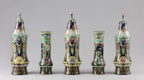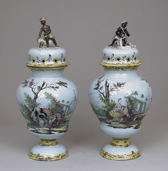 These vibrant vases with lids were crafted in 1826-1848 by C.J. Mason and Co. The vase is decorated with small landscape vignettes, each bordered by an oval frame, suggesting a view into a peaceful scene. Above, the pagoda-like lid adds to the overall Orientalist charm. These scenes aren’t isolated; similar depictions of serene landscapes have appeared across time and cultures, acting as a portal to tranquility. Consider, for instance, the ‘garden,’ as a recurring motif in Persian rugs, symbolizing paradise. And the pagoda? It evokes not just architectural beauty but a longing for spiritual ascension. The vase acts as a receptacle not only for physical contents but for deep emotional associations tied to human desires for tranquility and spiritual harmony. Such symbols, woven into the cultural fabric, remind us that art transcends mere representation, tapping into our collective memory. The journey of a single symbol through art is never linear but a continuous cycle of reinvention.