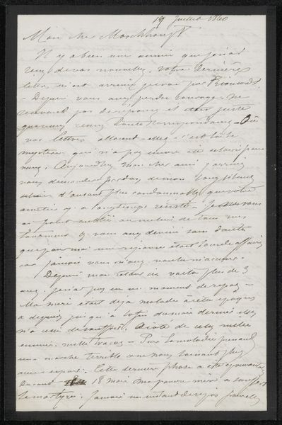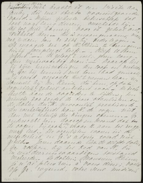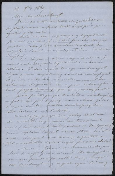 This letter was written by August Allebé to Jac van Looij on August 29, 1886. It's made with paper and ink, humble materials readily available in that era. Allebé's choice of material—common writing paper—and his hurried handwriting invite us to consider the social context of artistic correspondence. Here, the material's inherent qualities of ephemerality and everydayness reflect the casual, yet crucial, role of letters in sustaining artistic networks. The act of writing, a skilled tradition in itself, becomes a means of forging connections and exchanging ideas within the art world. It serves as a reminder of the labor and time invested in maintaining these relationships. This letter challenges the traditional hierarchy between fine art and craft, revealing how acts of correspondence are integral to the artistic process. By recognizing the value of the material, the process, and the context, we gain insight into the nuances of artistic collaboration and intellectual exchange in the late 19th century.