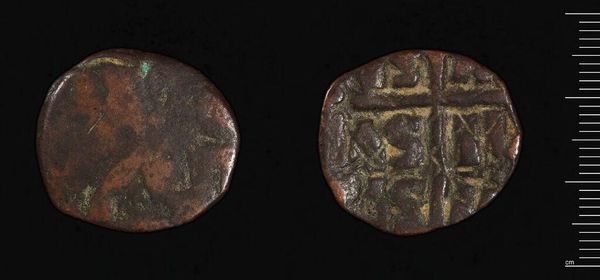Editor: This is an Anonymous Follis, material not identified, from Harvard Art Museums. The worn texture makes me think about the hands it must have passed through. What do you see when you look at this coin? Curator: Well, the anonymity is what strikes me. It wasn’t just a form of currency, but also a form of propaganda. How does the absence of a specific ruler’s portrait shape its reception and message across a broader public? Editor: So, the lack of a specific ruler makes it more universally acceptable? Curator: Precisely! It speaks volumes about the intended reach and how such imagery participates in the political landscape of the time. Editor: That's a different way to look at it. I hadn’t considered the political implications of something so seemingly simple. Curator: Exactly, art isn't just aesthetic. It actively shapes how people engage with power.