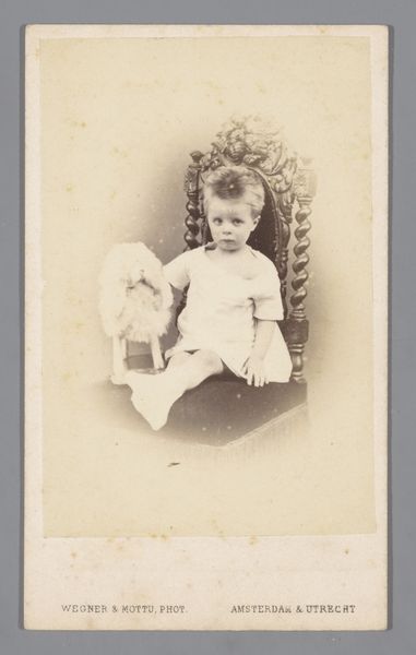This studio portrait by Carl Rensing captures a young boy and his wooden horse, a common symbol of childhood innocence and play. The horse, a simplified form of the noble steed, appears even in ancient Greek art, embodying ideas of freedom, power, and adventure. Note the boy’s folded arms and stern expression. This pose, often seen in formal portraits, conveys a sense of maturity, contrasting with the toy at his feet. This tension evokes the complexities of childhood, a fleeting moment between dependence and independence. The motif of the child with a toy, like the "putto" in Renaissance art, represents human vulnerability, yet also the potential for growth. The cyclical nature of life is reflected in these recurring images, reminding us that childhood, like all things, is temporary. These images are vessels carrying collective memories and emotions across generations.
