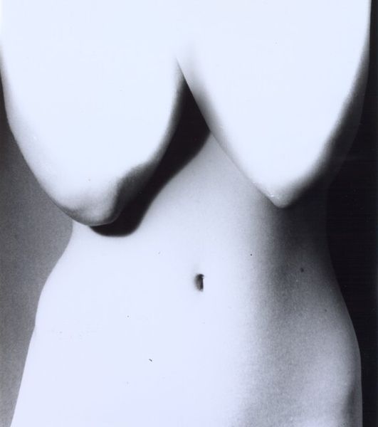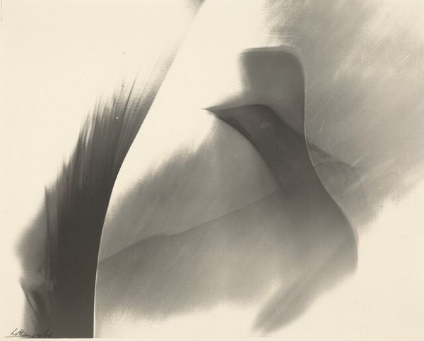 Editor: Man Ray's "Salle de Bain," created in 1931, is a striking gelatin silver print. It’s so stark; the black and white contrast is really intense, almost dreamlike. How do you interpret this work? Curator: The interplay of the nude figure, the sharp geometric line, and that cylinder…it evokes a primal image of form and containment, almost womb-like. Consider how bathing rituals themselves are ancient purification rites, loaded with symbolism across cultures. The harsh light transforms the familiar space into something abstracted, almost surreal. Does that resonate with you? Editor: I see that. The body is fragmented, reduced to these curves and planes. It feels almost dehumanized, like a classical statue. Curator: Exactly. Ray strips away the personal, offering us a glimpse into archetypes, primal memories of beauty, form, and the physical world. The bathing space transforms into a symbolic site, prompting contemplation about humanity, femininity, and identity. What do you make of that distinct line? Editor: I initially thought it was purely design, but now I see it kind of contains and restricts the figure, creating this tension. Curator: Precisely. And think of how Ray’s surrealist contemporaries explored these themes—identity, the body, anxiety, all visualized through bold images with psychological depth. Editor: It is incredible how Man Ray created all these tensions with such basic elements. The conversation also made me realize the image’s connections to deeper ideas like purification and archetypes. Curator: Exactly! Sometimes, simplicity in presentation masks profound layers of historical and cultural symbolism. The key is in deciphering that symbolism to access collective memories.