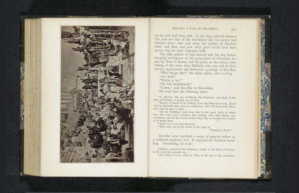Editor: This is "Gezicht op de Poel van Bethesda te Jeruzalem," or "View of the Pool of Bethesda in Jerusalem," by Félix Bonfils. It looks like an albumen print from before 1888, preserved in an old book. It’s a stark, almost otherworldly scene; it seems both documentary and staged. What’s your take on this image, considering the historical context of photography at the time? Curator: Bonfils’s work operates within a fascinating intersection of art, politics, and burgeoning tourism in the late 19th century. The albumen print, a relatively new technology, allowed for mass production and dissemination of images. In the context of orientalism, how might Bonfils’s photograph cater to, or even shape, Western perceptions of Jerusalem? Editor: That's a really good point! Thinking about "orientalism," do you mean he's possibly exoticizing Jerusalem for a European audience? Curator: Precisely! Consider who Bonfils’s intended audience was: largely European Christians eager to "see" the Holy Land. These photographs validated biblical narratives and fueled religious tourism. So the photographic framing, the perspective, the people included in it - they were carefully constructed for that consumption. The staging plays into these assumptions. It highlights, monumentalizes. Editor: It’s like he’s providing a visual confirmation of their pre-existing beliefs about the place, turning it into a spectacle. Does the very act of photographing transform the city into something for display, affecting its reality? Curator: Exactly! Bonfils wasn’t merely documenting; he was participating in the construction of an imagined Jerusalem, impacting both its historical narrative and future development as a tourist destination. By presenting a readily consumable image, how does Bonfils arguably simplify and commodify the experience of a vastly complex place? Editor: I see how these photos, though seemingly objective, actually play a powerful role in shaping cultural perceptions and even affecting the economic landscape through tourism. Thanks, that was illuminating!