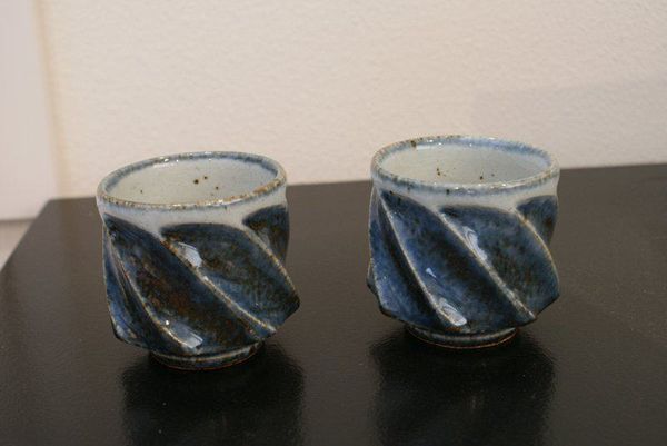 This is a sake cup, or 'guinomi', by Takeuchi Kimiaki, likely made sometime in the late 20th century, out of stoneware with a kind of drippy glaze. There's something about the rough texture and muted colors that feels both ancient and modern, like it could have been unearthed from an archaeological dig or found in a cool ceramics studio downtown. I love how the glaze pools and drips down the sides, creating these organic, unpredictable patterns. It’s like the cup is wearing a little mossy coat, or maybe it’s just been dipped in some primordial ooze. The surface is uneven, almost like the clay was shaped by hand with a very particular lack of concern for symmetry. The rim is wonky, and the whole thing has this beautifully imperfect quality. If you look closely, you can see where the artist’s fingers pressed into the clay, leaving these subtle indentations that give the cup a sense of intimacy and history. Thinking about Lucie Rie or even some of the funkier ceramicists working today, you can feel how art objects enter into a conversation across time. We bring our own experiences and interpretations to it, and it becomes something new each time.