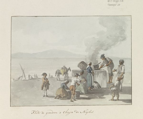 Editor: Here we have "Greeks Taking a Turkish Ship," made between 1829 and 1835 by Karl Loeillot-Hartwig, rendered in watercolor and print. It’s quite a chaotic scene. What I find striking is the contrast between the almost cartoonish figures and the very real violence being depicted. What's your take? Curator: This print allows us to examine the commodification of conflict through artistic production. How might the production and distribution of images like this – prints designed for wide circulation – contribute to the shaping of public opinion and the romanticization of war, essentially turning suffering into a commodity? Editor: So you are saying the print, as a physical object distributed amongst people, affected culture in the 1830s? Curator: Precisely. It also offers insights into the socio-political climate. Prints were a relatively accessible art form. This artwork can be viewed less as a representation of a historical event and more as a product that embodies a certain ideology linked to national identity and the “heroic” acts undertaken during wartime. Look at the detail. How are labor and skill deployed in the service of national narratives and how does that inform its social context? Editor: That makes me consider the actual labour in its production - both artistic and manual, like moving material around during production. Curator: Exactly. The very process of creation becomes enmeshed within a web of production, dissemination, and ultimately consumption. It compels us to recognize art not just as a window onto history, but as a historical artifact that speaks volumes about the mechanisms of power and cultural exchange. Editor: It’s fascinating how the materials and production methods add another layer to the image’s message. Thank you! Curator: My pleasure. Remember to always consider not only the what but also the how and why of artistic creation.