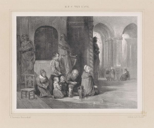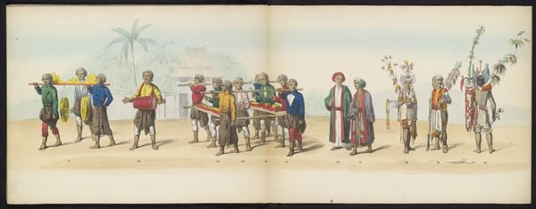 Curator: What strikes me first is this incredible feeling of serenity, even amongst ruins. It's almost melancholic, a watercolor symphony in muted tones. Editor: It is rather romantic isn't it? You’re observing David Roberts’s work, dating from 1846 to 1849, called "Entrance of the Temple of Amun, Thebes". He was quite fascinated by Egypt. What else do you notice? Curator: The light is sublime! It’s as if he's captured not just a place, but a moment, a breath of history hanging in the air. And the scale… it's grand, yet intimate. The figures seem so small against the backdrop of these colossal structures. They look like a film set with live people! Editor: Exactly. And remember the historical context: Roberts's work emerges within a surge of European Orientalism. His romantic depictions played a significant role in shaping Western perceptions of the Middle East and its peoples, a perception often intertwined with colonial narratives of power. How does this consideration affect your understanding of it? Curator: It does bring a sense of tension into the mix, a kind of "othering," but also, perhaps, genuine awe? I mean, look at the detail he lavishes on the architecture versus the almost generic depiction of the people. Is that telling, or just... efficient? Editor: Precisely. That juxtaposition highlights a common dynamic where Western artists tended to fixate on the visual spectacle of ancient structures, almost turning local populations into mere props within their grand narratives. Curator: Hmmm, something to ponder there, a tension indeed. Still, purely aesthetically, there is something beautiful at play. Roberts uses watercolor like an old memory fading from our memory; that soft ethereal way, a sense of timelessness and quiet contemplation... but this image might reveal other not so romantic things. Editor: Precisely; analyzing Roberts through today's lens, we see that while his artistic skill cannot be dismissed, we must scrutinize the socio-political implications of romanticizing distant lands and, more importantly, people. Thank you. Curator: Thanks to you; that changes how I see the water. Art is always much bigger than the canvas after all.