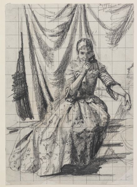 Editor: Here we have Carl Bloch's "Study for the etching 'The Young Man and Death,'" made sometime between 1790 and 1890. It's a pencil drawing, currently residing at the SMK in Copenhagen. There’s a vulnerability in the figure’s posture that’s quite striking. How do you interpret this work within the context of 19th-century art and its role in society? Curator: Bloch positions the artwork in a complicated public sphere, right? Romanticism certainly played with the sublime, with emotional intensity, but this preliminary sketch also engages with ideas surrounding morality, mortality, and faith – all potent themes within the socio-political discourse of the 19th century. The museum context elevates it to an object of artistic study, but initially, consider what the piece might have meant for public moral instruction? Editor: That's interesting – almost like a visual sermon? I hadn't considered it as potentially didactic. The gridlines suggest a very deliberate, almost calculated, approach to composition, contrasting with the raw emotion portrayed. Curator: Exactly. How does the institutionalization of art – placing it within the gallery space – shift or reinforce those original meanings and intentions? The drawing becomes not just a religious tool, but also an aesthetic object. How might the viewing public perceive the interplay of these two readings, the faith-based with the aesthetic experience? Editor: I see what you mean. Viewing it as both devotional and aesthetic really highlights the layers of cultural significance. Thanks, that’s given me a lot to think about. Curator: And consider, who were the consumers of this type of art? What did its existence say about their hopes, values, and societal standing? It’s a continual interplay between the artwork, the public, and the institutions that house it.