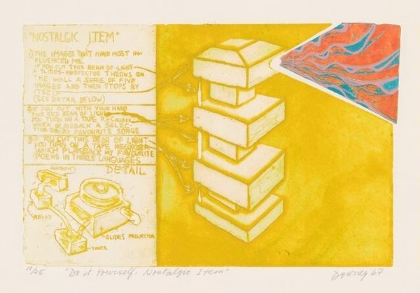 Curator: This intriguing mixed-media piece, "no title: p. 228" by Esq Tom Phillips, presents a fascinating collage of text and imagery. What's your initial take? Editor: It feels like a whispered secret blooming from the page, all those cutout words floating like little thoughts. A bit melancholy, perhaps? Curator: Indeed. The layering of text, both obscured and highlighted, creates a visual palimpsest. The artist seems to be interrogating the source text by extracting and isolating certain phrases. Editor: It’s like he's built a tiny, poetic world out of somebody else's story. "Cigar art" and "boxes of prints," what's the narrative brewing in there? Curator: Perhaps a meditation on consumer culture, desire, and artistic production. The formal arrangement suggests a tension between the printed word and subjective interpretation. Editor: I love that. It's a beautiful reminder that art can be found even within the rigid structures of language and that those structures can be rearranged.
