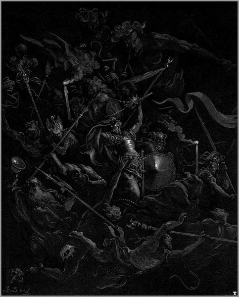 Gustave Doré made this engraving, likely in the 1860s, to illustrate Milton’s Paradise Lost. The medium is crucial here. Doré was a prolific printmaker, and the sharp contrasts of black and white are intrinsic to the process. Look closely, and you’ll see how he used varied densities of lines to create a sense of light and shadow, of volume and depth. This wasn’t just a technical exercise; Doré was a master of dramatic effect. Engraving is an artisanal skill. The image is incised into a metal plate, traditionally copper, using a tool called a burin. The labor-intensive nature of this process—every line meticulously carved by hand—contrasts sharply with the dark subject matter: the fall of the rebel angels into hell. There is a striking tension between the labor involved in producing such detail, and the chaos represented. This reminds us that even the most seemingly spontaneous and imaginative images are rooted in material practices. Understanding the 'how' of an artwork, allows a far richer appreciation of its 'what' and 'why.'