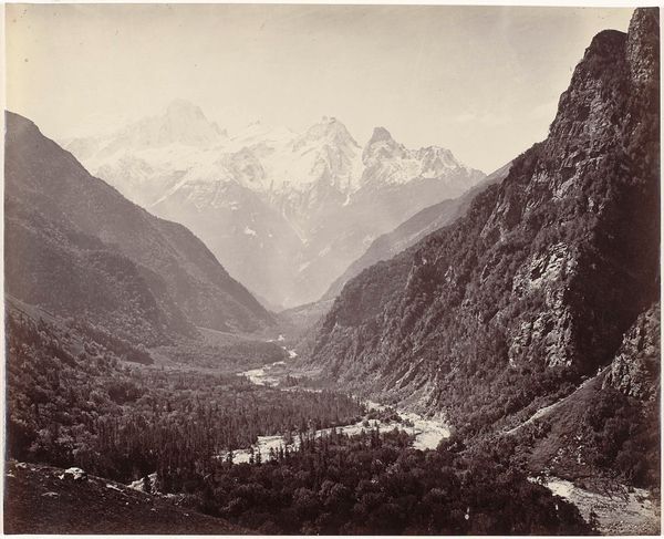 Curator: Giorgio Sommer created this captivating gelatin silver print, "Gezicht op de Gotthardbahn bij Göschenen," sometime before 1894. It resides here at the Rijksmuseum. Editor: The first impression I get is of dramatic isolation. The overwhelming scale of the mountains almost smothers the little town nestled in the valley. It speaks to humanity’s vulnerability. Curator: Indeed. The image participates in a late 19th-century romanticism while being explicitly a depiction of industrialization--the Gotthard Railway changed the landscape, quite literally. Editor: So, it becomes a conversation between nature’s sublime power and human encroachment. I’m curious about Sommer’s motivations, though. Was he celebrating progress or critiquing its impact? Curator: That tension is critical. The railway facilitated increased tourism and trade, profoundly impacting the lives of people in Göschenen. This image also speaks to Swiss identity. Editor: It definitely presents a hyper-masculine idea of nation. The very construction of this railway became synonymous with Switzerland's identity, specifically its engineering prowess and economic potential, and the image feeds into that romantic idea of nationhood. Curator: But it's interesting that it appears within this movement known as Pictorialism. So how do we consider Sommer as using photography, generally thought of as "objective", as art, which in his time, allowed the photography to explore these social implications. Editor: That's right. Think about who benefits from these projects and who’s potentially marginalized. It offers a lot to chew on. This image really highlights how power operates within even the most “scenic” vistas. Curator: Exactly. I appreciate how this one image encapsulates the complexities of progress and its ripple effects through identity and representation. Editor: Yes, a quiet picture holding multitudes! Thanks for unveiling the complex layers here.