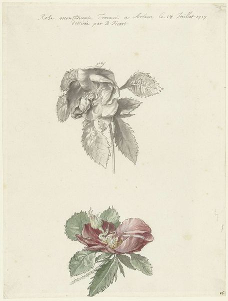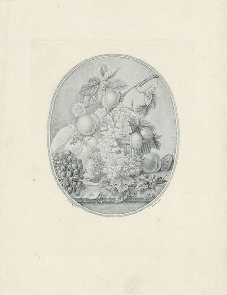 Curator: Oh, my first thought is what a tender, delicate vision in monochrome. Editor: Indeed, it is! What we're observing is a pencil drawing by Hendrik Schwegman, dating from the late 18th or early 19th century, held here at the Rijksmuseum. It’s titled "Bloemenvaas," or "Vase of Flowers." Curator: Vase of flowers… a very matter-of-fact title, but oh, the emotion evoked. It’s more than just an arrangement; it’s a gentle elegy, somehow. Those drooping blooms, the oval frame as if we are looking into a secret mirrored garden. Editor: The oval format was quite popular then for portrait miniatures; it could suggest an eternalized, intimate view. Note, also, how he depicts classical allusions carved in relief on the vase. Can you see a mythological figure perhaps Eros among them? This was not merely botanical illustration, but also an allegory of beauty. Curator: Right! I was wondering if those classical motifs were visible to all and if it spoke of beauty and how we preserve and treasure beauty. The gray strokes highlight their ephemeral existence which only enhances the emotion and mood. I also sense it is romantic, but academic. A clash between two worlds somehow. Editor: The artist was clearly proficient in academic art—witness the detailing but embraces Romanticism’s sensitivity. Flowers, even now, often symbolize transient beauty, cycles of life. To see these rendered in such muted tones forces a meditation on mortality. And remember, back then, certain flowers also held very specific meanings within the Language of Flowers, and a rose could denote love, purity, joy or death. Curator: Perhaps that tension I was sensing is more an awareness, an embrace of the delicate balance, and all contained within something so timelessly beautiful. I admire it more knowing this. Editor: The layers of historical associations certainly enrich our experience and bring light into the shades, I see more to this bouquet as well.