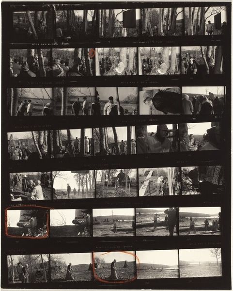 Robert Frank made "Italy 9," a black and white photograph, to experiment with how pictures can be arranged in a sequence. It’s a contact sheet, the kind photographers use to see all their shots at once; it’s usually a step on the way to making a final print, but here it’s the artwork itself. There’s this great moment in the bottom left, with someone flying through the air on a swing. The image is blurred, so you can really feel the speed and the joy of that split second. It's like Frank is capturing a feeling more than a specific image. By showing us the whole roll, Frank lets us see his process. It becomes clear how photographs build on each other and change the way we see. Think about how Sherrie Levine used Frank's work, re-photographing his images to ask questions about authorship and originality. It shows how one artist's work becomes a conversation for others.