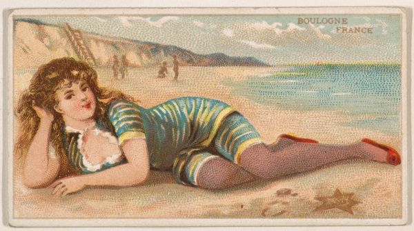Santa Barbara, California, from the Surf Beauties series, was issued by Kinney Bros., a tobacco company, as a collectible card. These cards, popular in the late 19th century, offer insight into the cultural and societal values of the time. They reflect an era deeply entrenched in consumerism, where even tobacco products were packaged with alluring imagery to capture attention. The "Surf Beauties" series, while seemingly innocent, subtly promoted an idealized version of femininity. The woman depicted is white, with a body type that aligns with the beauty standards of the time, her gaze demure, her pose inviting yet restrained. Representations like these reinforced prevailing notions of gender roles and expectations. The seaside location evokes ideas of leisure and escape, but it is available only to certain segments of society, excluding many people of color. Looking at this card today invites reflection on how marketing and media shape our understanding of identity and desire. It serves as a reminder of the complex interplay between commerce, culture, and representation.