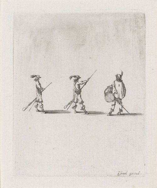Abraham Teerlink made these two studies of a standing shepherd using graphite on paper. The use of graphite, a relatively soft and easily workable material, allows for subtle gradations of tone. See how the artist uses delicate lines to render the shepherd's clothing, capturing the texture of the cloth. The quickness of the strokes suggests that these sketches were made from life. Consider the social context: shepherds were part of the rural working class. Teerlink's choice to depict this figure speaks to a broader interest in everyday life that emerged in the late 18th and early 19th centuries. The artist's hand is evident in the careful observation and rendering of form. The sketches remind us of the labor involved in both the subject's life and the artist's practice. By focusing on materials, making, and context, we can understand the full meaning of Teerlink's sketches and the value in depicting everyday subjects.