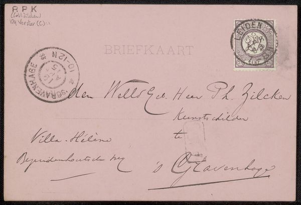 This is Johan Thorn Prikker's "Briefkaart aan Philip Zilcken" - a postcard, really a brief message, probably made with ink and paper. It’s all about the directness of mark-making, isn’t it? The way the handwriting creates these wonderful lines, dark and fluid, crossing the surface. You can almost feel the motion of his hand, the pressure on the pen. There’s a real dance happening between the text and the official stamps, this kind of conversation, layering of information. The stamp marks remind me of the painterly gesture, the way the ink spreads and bleeds on the page. I wonder about the color, that muted purple-gray. It feels so specific, not quite melancholy, but maybe a little nostalgic? It makes me think about how messages move through time and how the simplest things can carry so much feeling. I'm reminded of Cy Twombly. It’s that sense of poetry and gesture, that feeling like you are close to the artist's hand. Art is such an ongoing conversation.