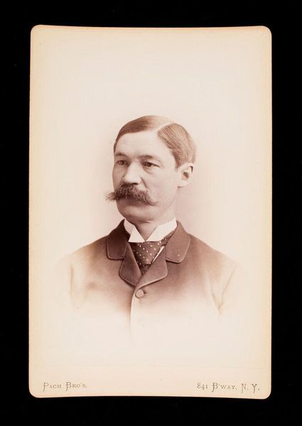 Editor: Here we have a portrait of George Perkins Knapp, captured by Pach Brothers. It gives me a sense of formality and perhaps a little melancholy, maybe because of the sepia tones? What catches your eye in this portrait? Curator: The gaze, definitely. It's directed just beyond us, lost in thought. I wonder what preoccupied him? Perhaps a reflection on the fleeting nature of time, considering photography was still relatively new then? It's almost as if he's contemplating his own future legacy. Editor: That's a beautiful way to look at it. I was too caught up in the surface details. Curator: It is easy to get lost in the details! But isn't it marvelous how a simple portrait can unlock so many questions about a person's inner world?