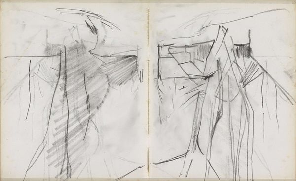 "Bomen voor een boerderij", or "Trees for a Farm," is a pencil drawing by George Hendrik Breitner, part of his sketchbooks collection. Breitner worked during a time of great social change in the Netherlands. There was rapid urbanization and industrialization which lead to a growing divide between urban and rural life. Breitner, an urbanite, often explored themes of alienation and the changing social landscape in his art. This drawing contrasts with Breitner's more well-known cityscapes. The rural subject matter, with a focus on natural forms and landscapes, evokes a feeling of nostalgia for a simpler time. The sketchy, unfinished quality makes the drawing feel immediate, like a fleeting moment captured on paper. It's not a romanticized view of the countryside, but rather a raw, unvarnished glimpse of rural life. What emotions does it evoke in you? Nostalgia? Perhaps a longing for nature? Or perhaps, a sense of disconnect from this simpler life?