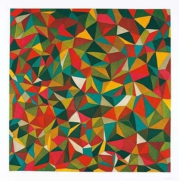 Editor: This is Julio Le Parc’s "Collage," and although the date isn't listed, it strikes me with its dazzling, almost dizzying array of colors and perfect geometry! It's quite overwhelming. How do you interpret its impact and significance within art history, especially given its association with Op Art? Curator: Considering Le Parc’s broader body of work and the context of the 1960s, his experiments were revolutionary. Le Parc challenged the traditional art world’s emphasis on the artist’s individual expression. How does this piece speak to the socio-political upheavals of that decade, the increasing focus on collective experiences rather than the singular genius? Editor: I hadn't considered the collective aspect. It feels so precise and carefully planned, like a statement against, perhaps, the more chaotic elements of that era? Curator: Exactly! Think about the art world's institutions and the social hierarchies it upholds. Artists like Le Parc, through collectives, sought to disrupt those norms by dematerializing the art object. Does the fact that this is titled “Collage," yet appears digitally-created, confuse your understanding of Le Parc's intentions at all? Editor: It does a bit, yes! I think I thought that the rigid lines was coming straight from hard edge painting; collage has a connotation of randomness. The regularity tricks me, and the colours make me dizzy! I will never consider collage under this light. Thanks. Curator: My pleasure! Analyzing art, particularly abstract forms, requires us to understand not just what’s visible, but also the cultural forces shaping the artist’s intentions. And those works can tell you much more when contextualized, right?